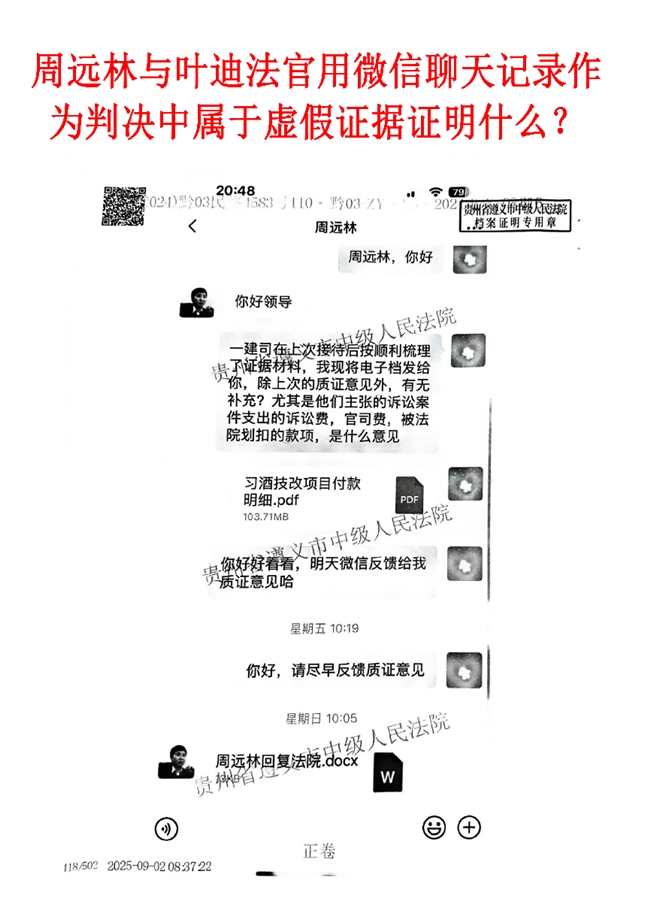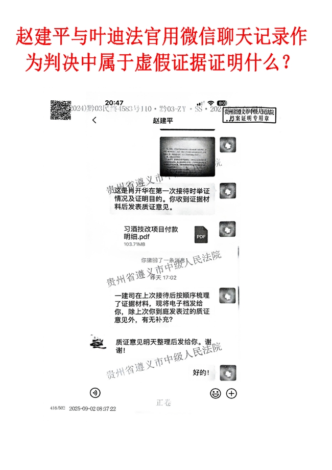 被举报人:遵义市中级人民法院法官袁晶晶任(2024)黔03民终4583号民事判决审判长与贵州建工集团一建司赵建平微信聊天记录作证据,驳回上诉人请求,维持原判。