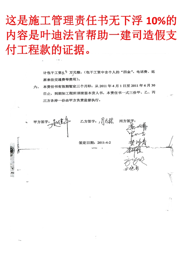 2011年4月2日施工总包方委托人甲方赵建平、乙方周远林、丙方施工责任人,方学明、龚世军、官克波、李详胜、宋小东、方学明、黄鸿春等之人。